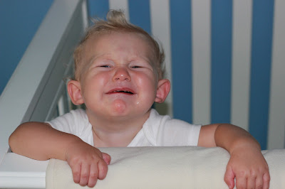 *Waking up-No matter how much you put up a fight to actually fall asleep, you are one grumpy guy when you wake up (in the morning and after naps). With your eyes still closed, you thrash about, kicking your legs and whining until you're ready to wake up. It's not fun for any of us--especially when you're waking up in our bed.
